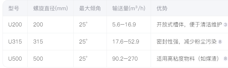 以上參數(shù)均為標(biāo)準(zhǔn)工況值,實(shí)際需根據(jù)物料密度、濕度、輸送距離調(diào)整。螺旋輸送機(jī)安裝限制?:空間狹窄用U型槽(占地?。恍璐怪陛斔蜁r(shí)選專用管式機(jī)型。