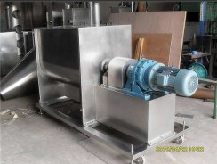 臥式混料機(jī)由U形容器、螺帶攪拌葉片和傳動(dòng)部件組成;螺帶狀葉片一般做成雙層或三層,外層螺旋將物料從兩側(cè)向中間匯集,內(nèi)層螺旋將物料從中間向兩側(cè)輸送,形成對(duì)流混合。 螺帶混合機(jī)對(duì)于粘性或有凝聚性的粉粒體的混合以及粉粒體中添加液體及糊狀物料的混合有良好的效果,筒蓋可做成全開式門,以便于對(duì)設(shè)備進(jìn)行清洗更換產(chǎn)品。